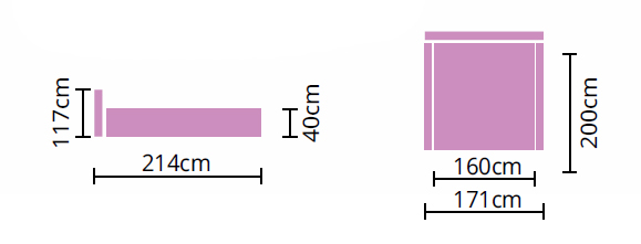 Az ágykeret magassága: 40 cm, a fekvőfelület magasságát a választott matrac határroza meg.