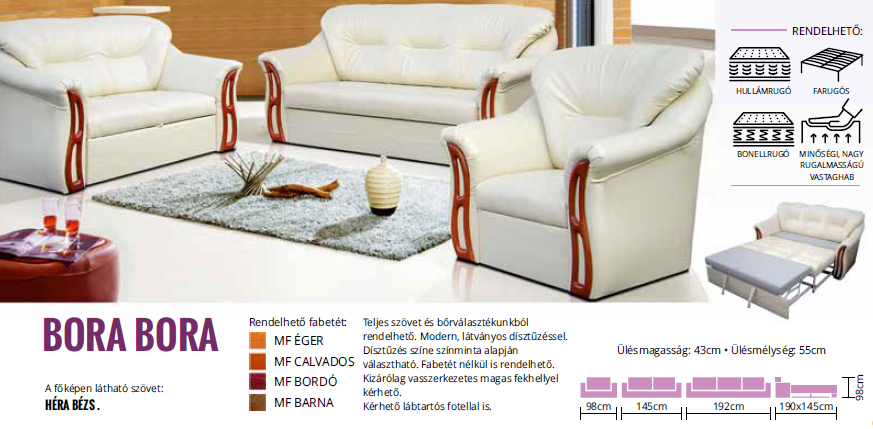 - Erősített bonellrugóval, illetve szivacsbetéttel is kérhető.