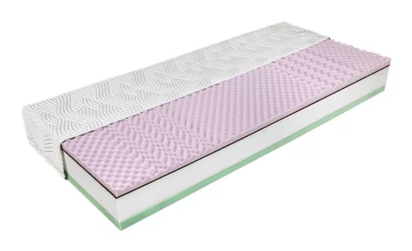 Szendvicsszerkezetű hideghab komfortmatrac oldalanként eltérő keménységgel, masszázsfunkciójú kényelmi réteggel, vákuumcsomagolásban.