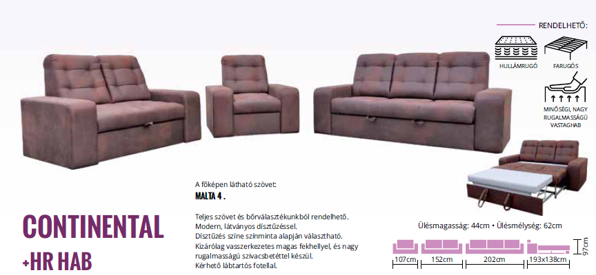 • A teljes szövet és bőr választékból megrendelhető.