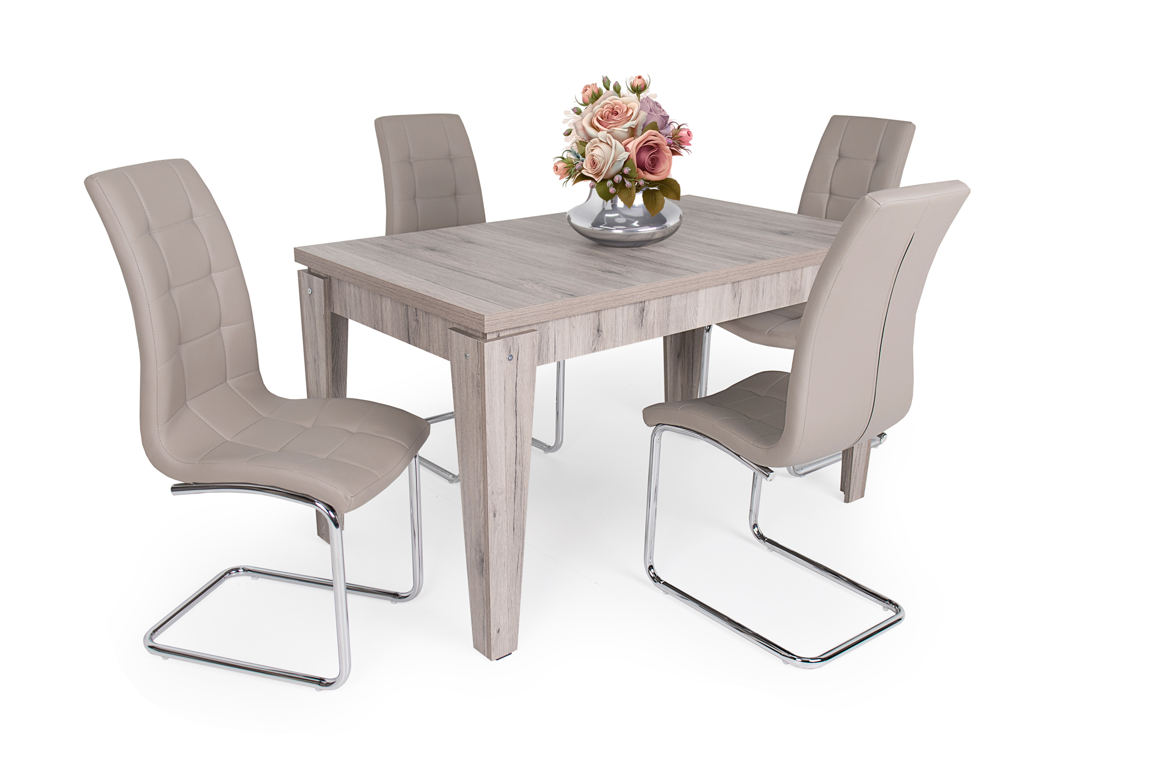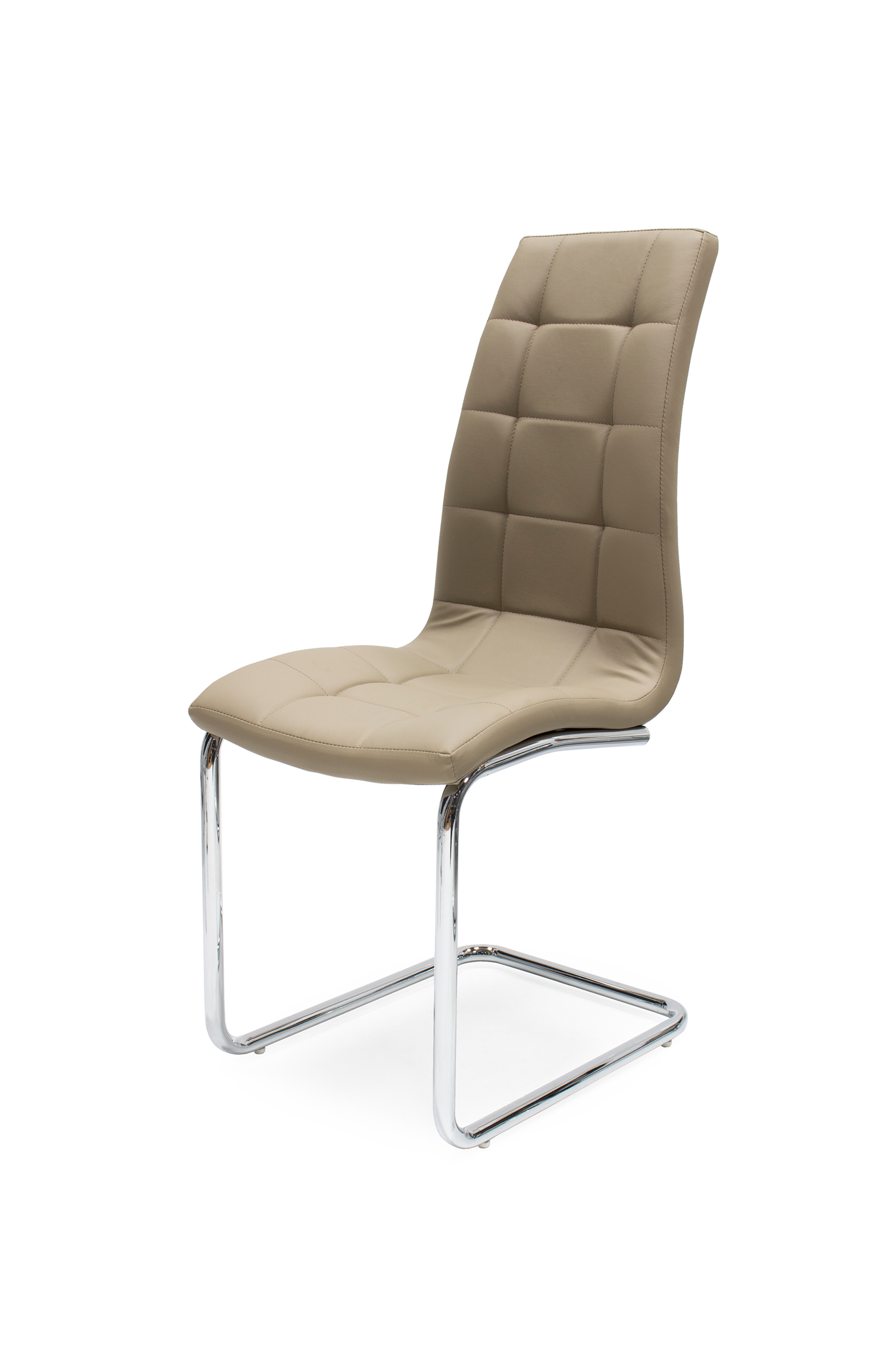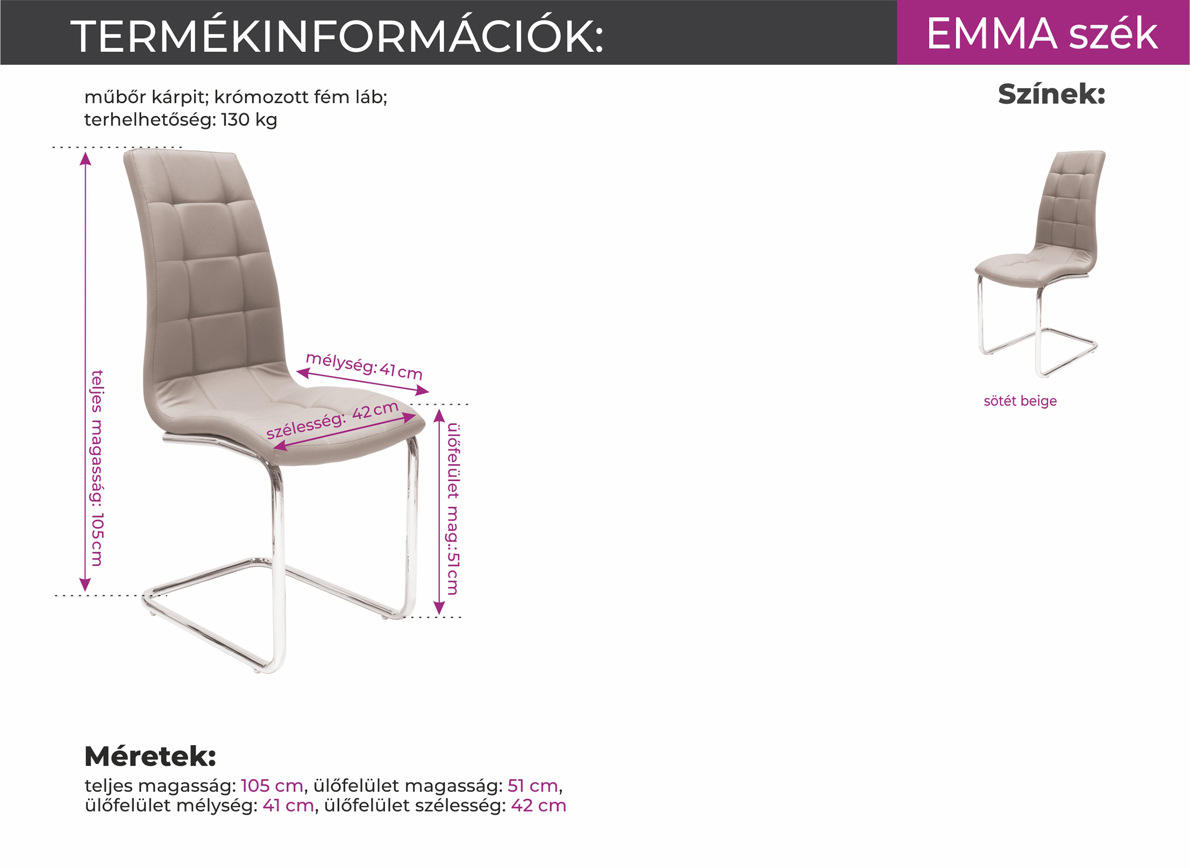 A konyhában és az étkezőben nem csupán a kényelem a fontos, hanem az is, hogy milyen hangulatot alakítunk ki, milyen színeket használunk. Az Emma szék sötét beige színe jól társítható világos vagy akár sötét színű asztalokkal is. A krómozott fém lábak tökéletesen passzolnak a műbőr kárpithoz.