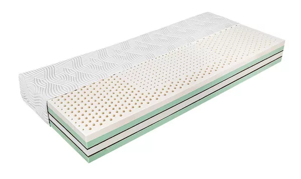 Szendvicsszerkezetű hideghab komfortmatrac kiváló terheléselosztással, oldalanként eltérő keménységgel, zónásított gumilatex izületvédő kényelmi réteggel.