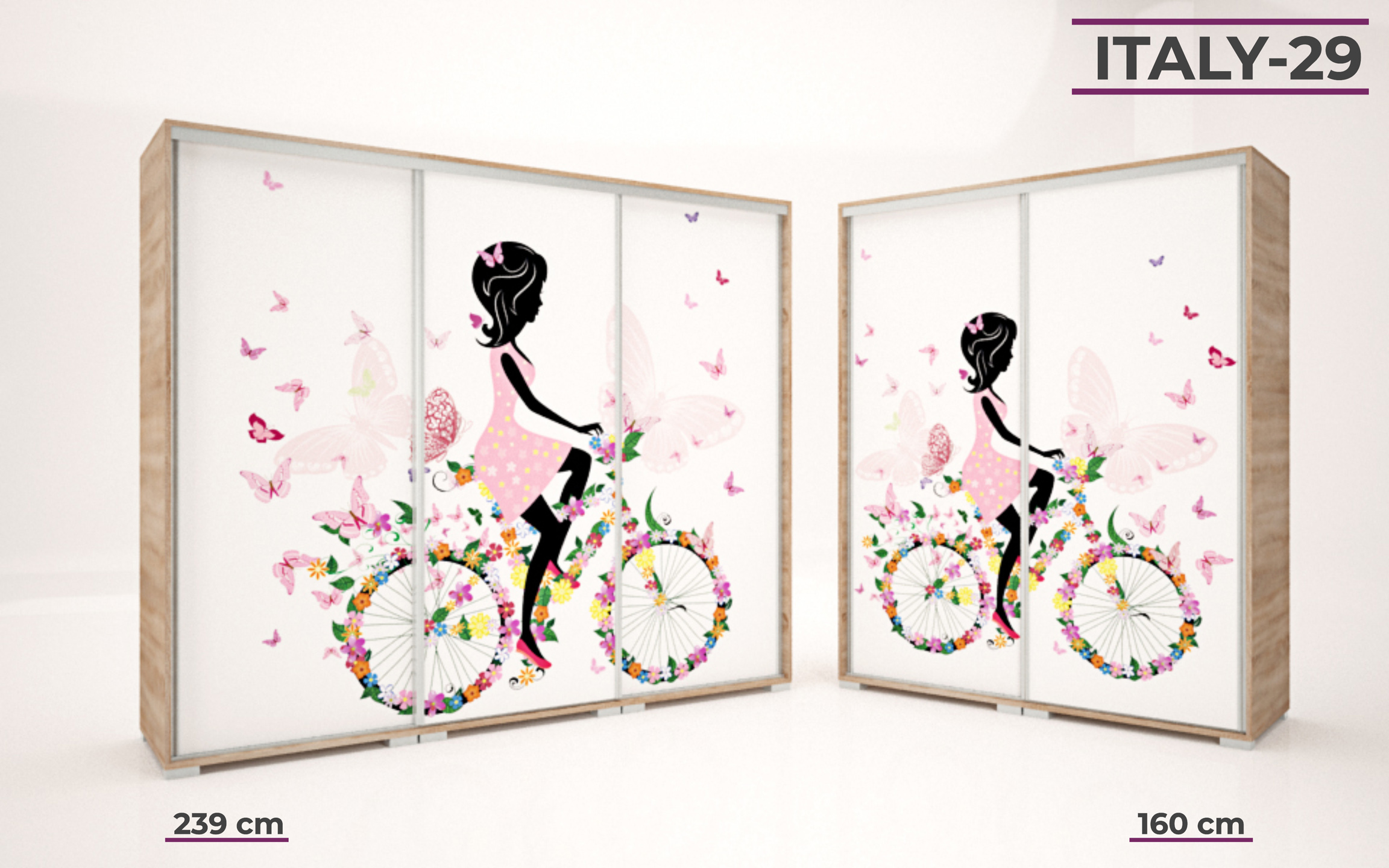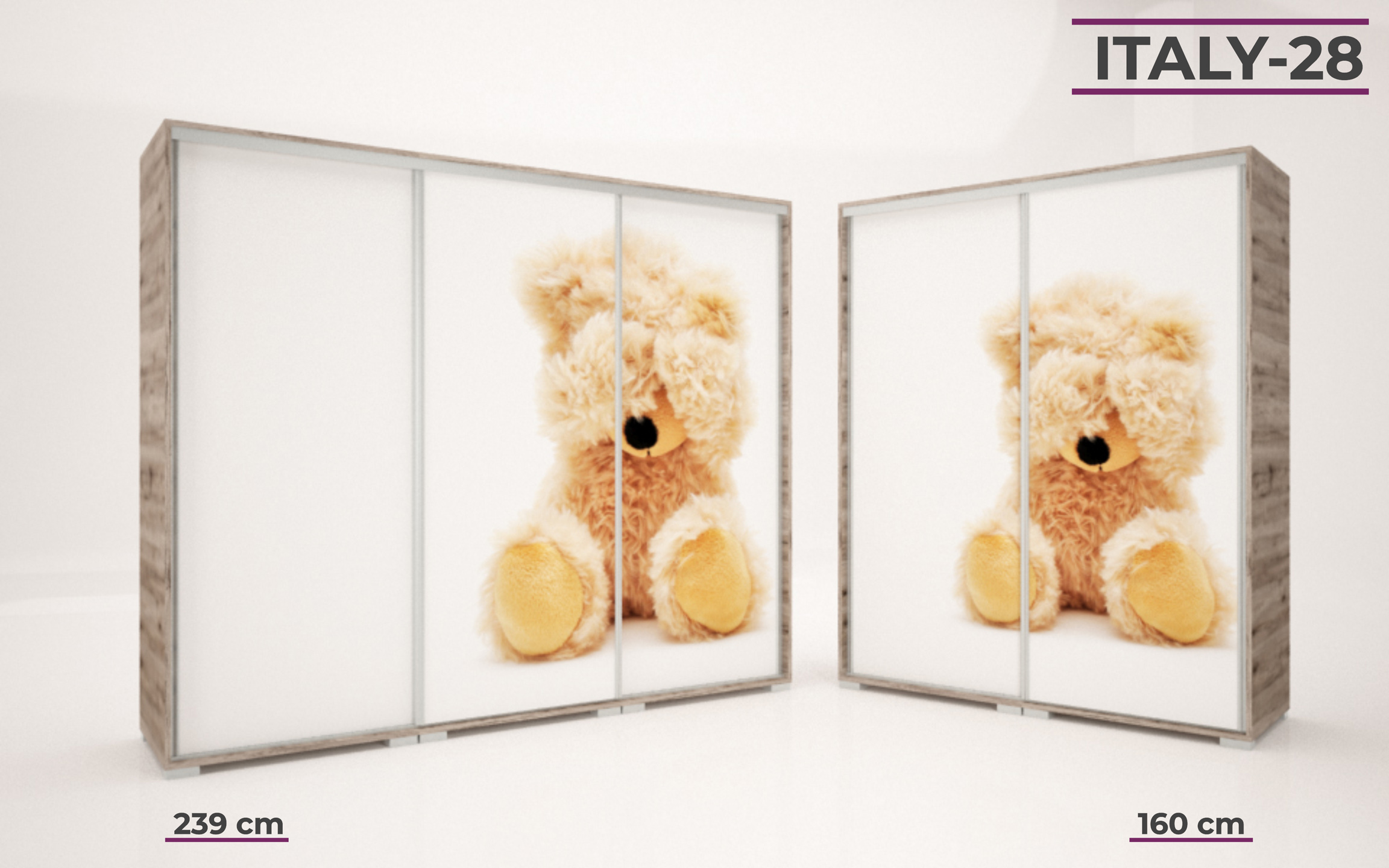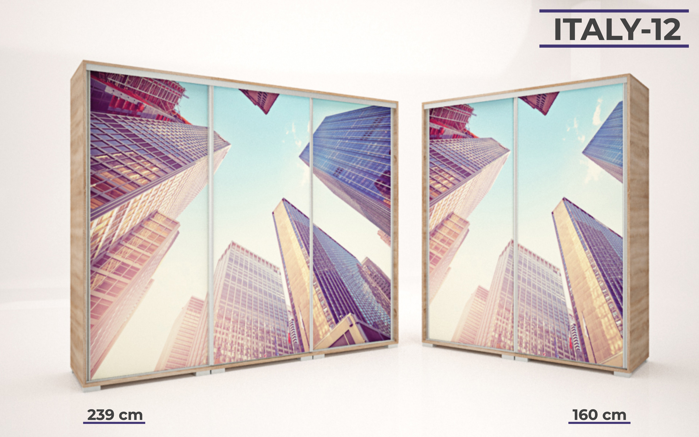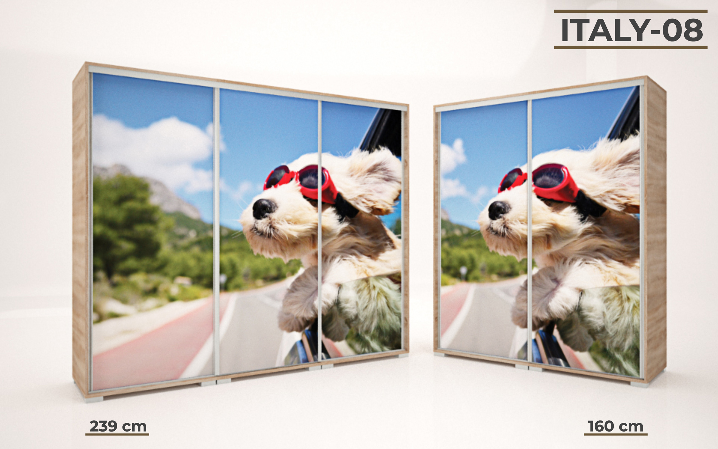 Italy gardrób 160 és 239 cm-es méretben kapható. 16 féle korpusz szín közül választhatunk. A festett mintás ajtó nagyon ízléses megjelenést ad a terméknek. 33 féle minta közül lehet válogatni, szinte minden korosztály talál magának tetsző képet a felhozatal között. Ez a gardrób nem csak hasznos a hálószobában, de egyben annak díszévé is válik. Opcionálisan választható termékek: – sarokpolc – tolóajtós sarokelem – fiókos alsó magasító – tolóajtós felső magasító.