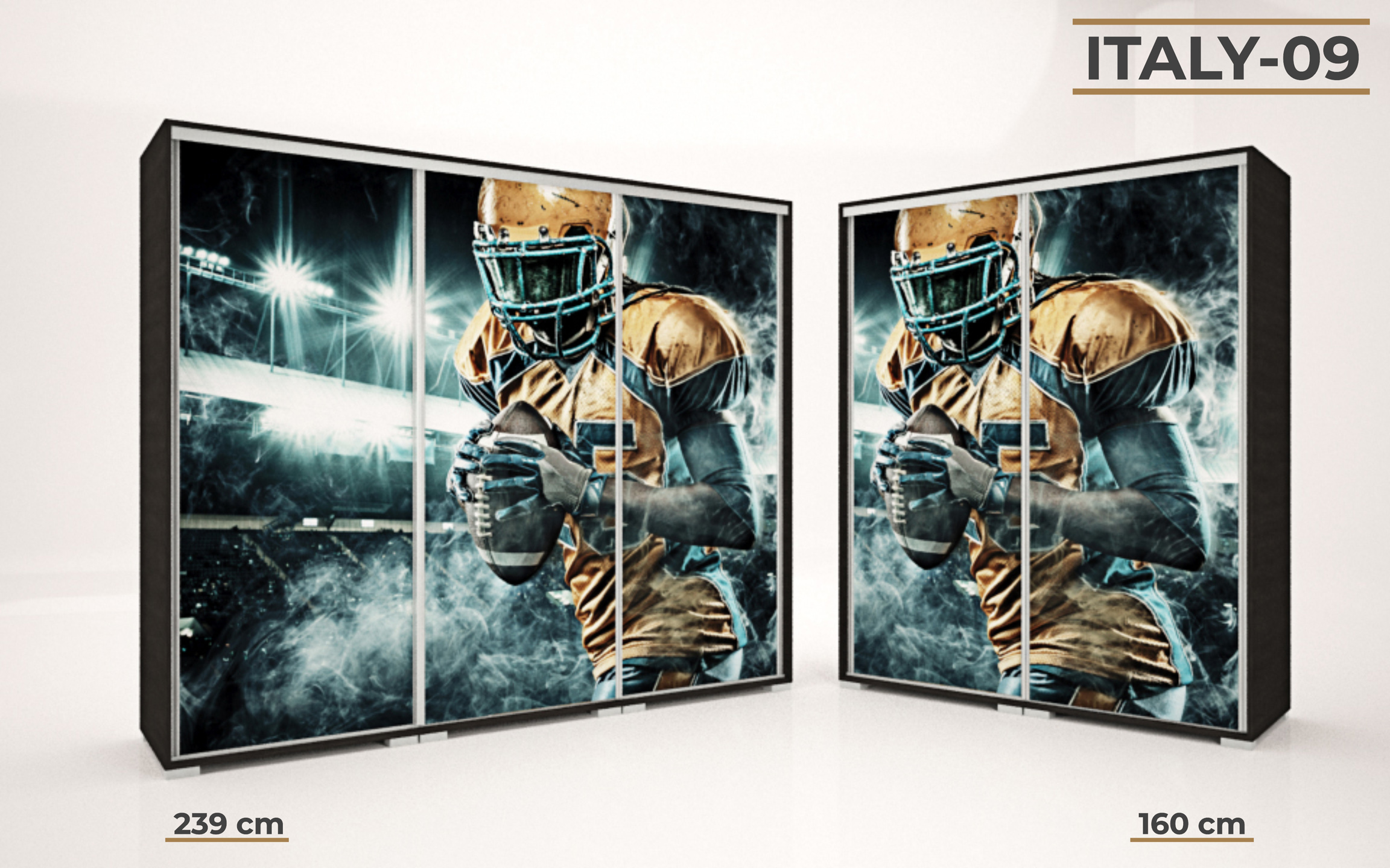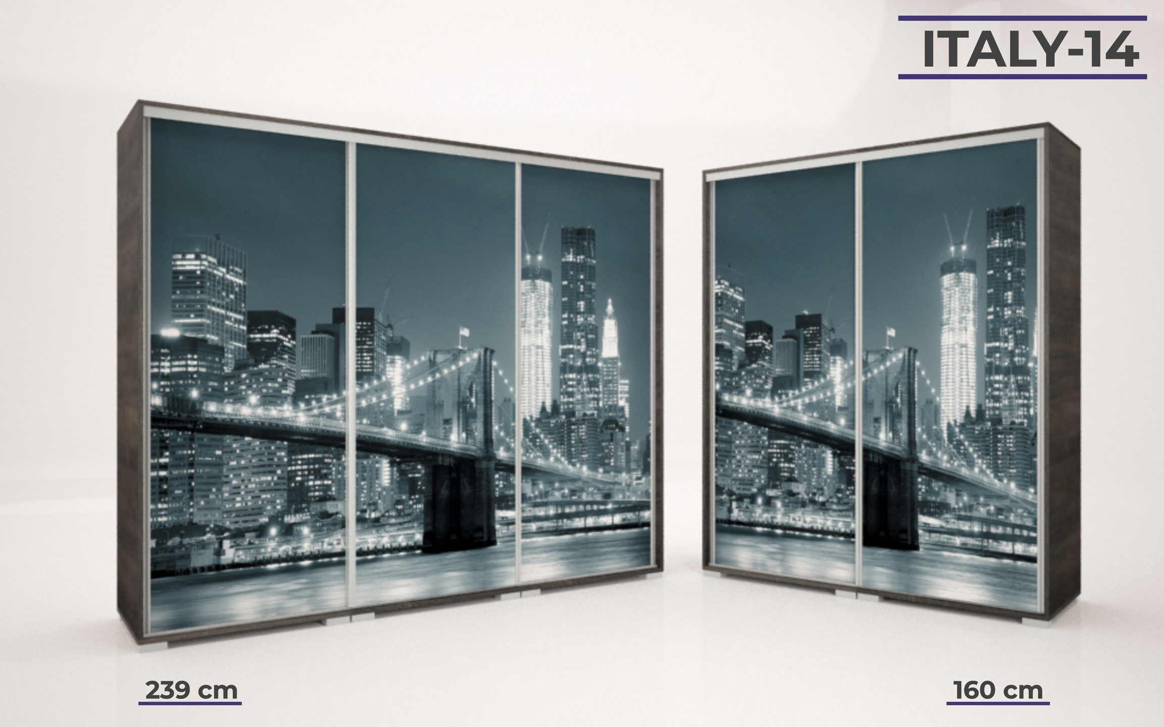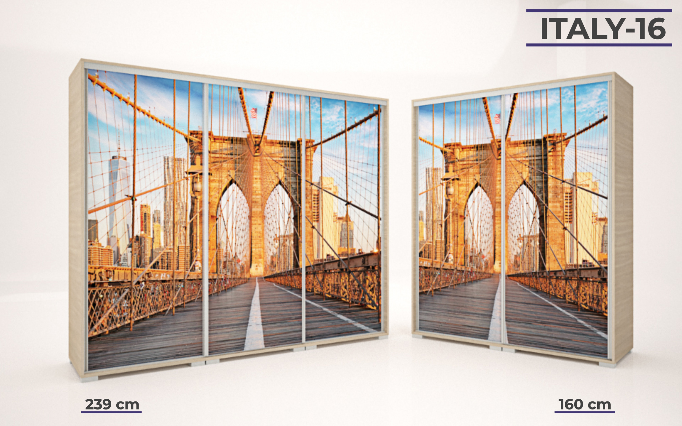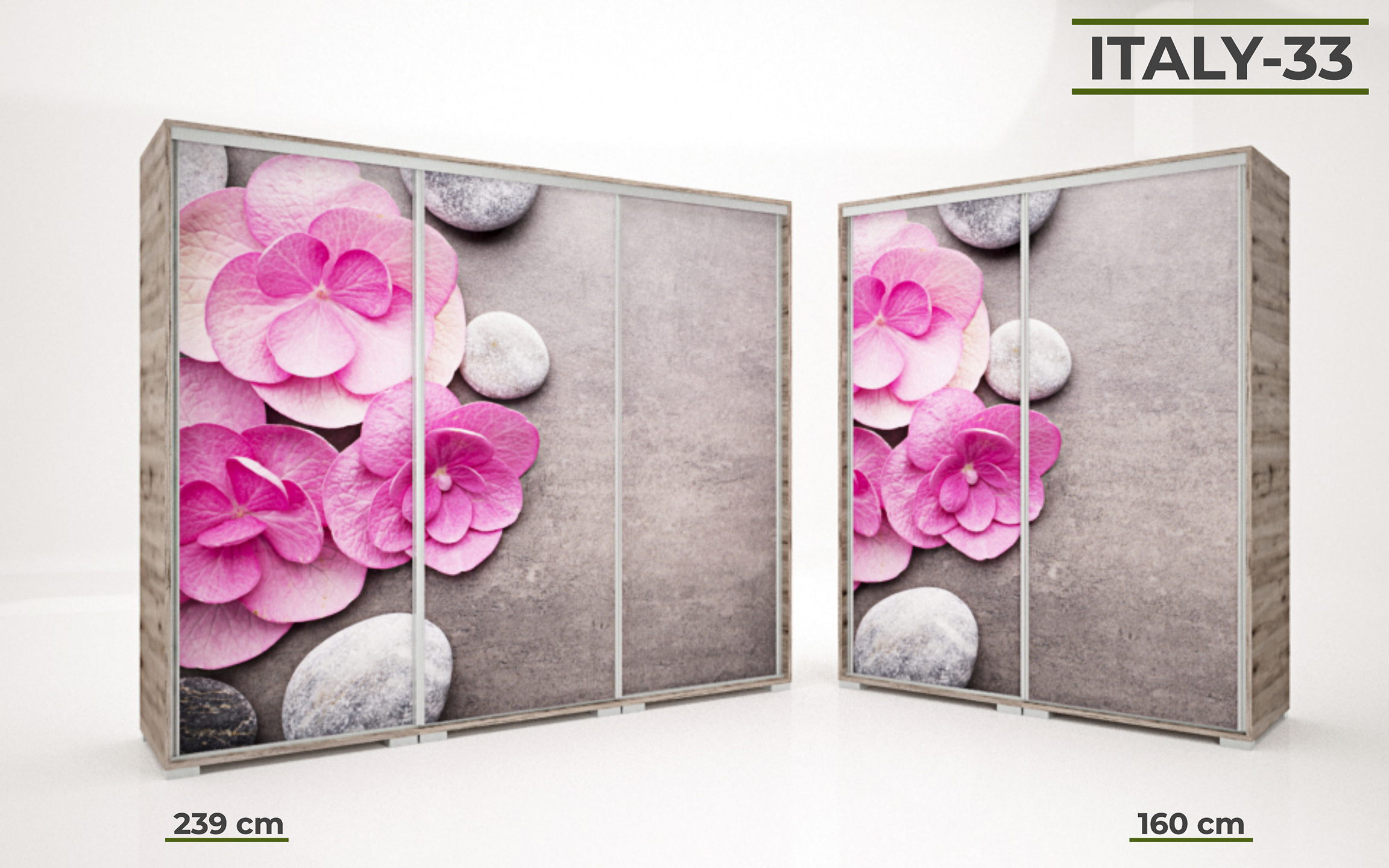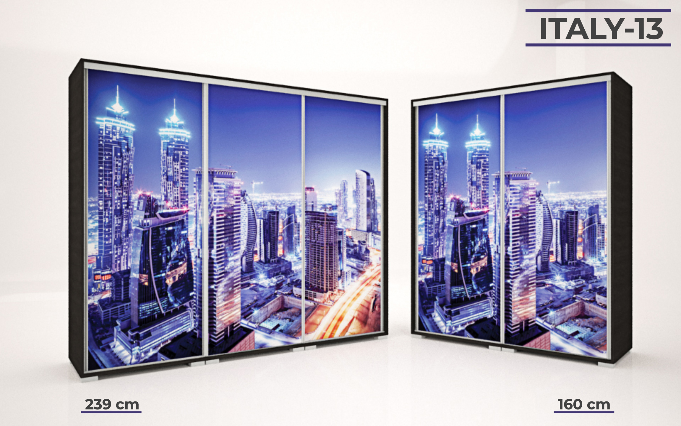 Italy gardrób 160 és 239 cm-es méretben kapható. 16 féle korpusz szín közül választhatunk. A festett mintás ajtó nagyon ízléses megjelenést ad a terméknek. 33 féle minta közül lehet válogatni, szinte minden korosztály talál magának tetsző képet a felhozatal között. Ez a gardrób nem csak hasznos a hálószobában, de egyben annak díszévé is válik. Opcionálisan választható termékek: – sarokpolc – tolóajtós sarokelem – fiókos alsó magasító – tolóajtós felső magasító.