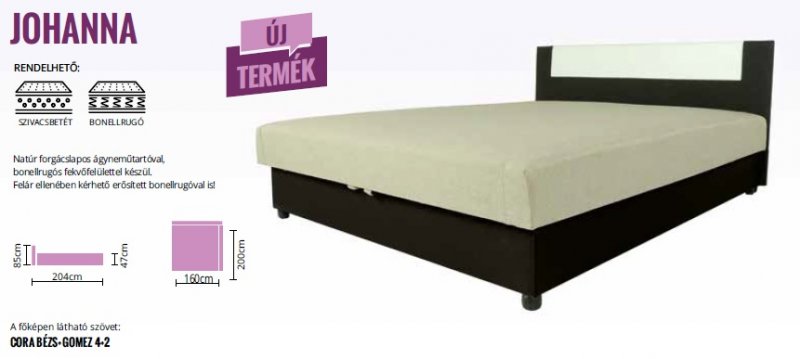 Natúr forgácslapos ágyneműtartóval, bonellrugós fekvőfelülettel készül. Felár ellenében kérhető erősített bonellrugóval is!