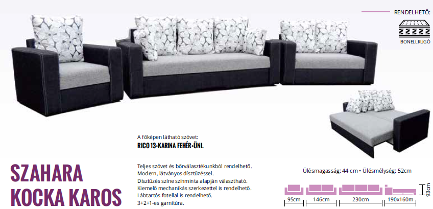 - Kizárólag fabetét nélkül, magasfekhellyel, és erősített bonellrugóval készül.