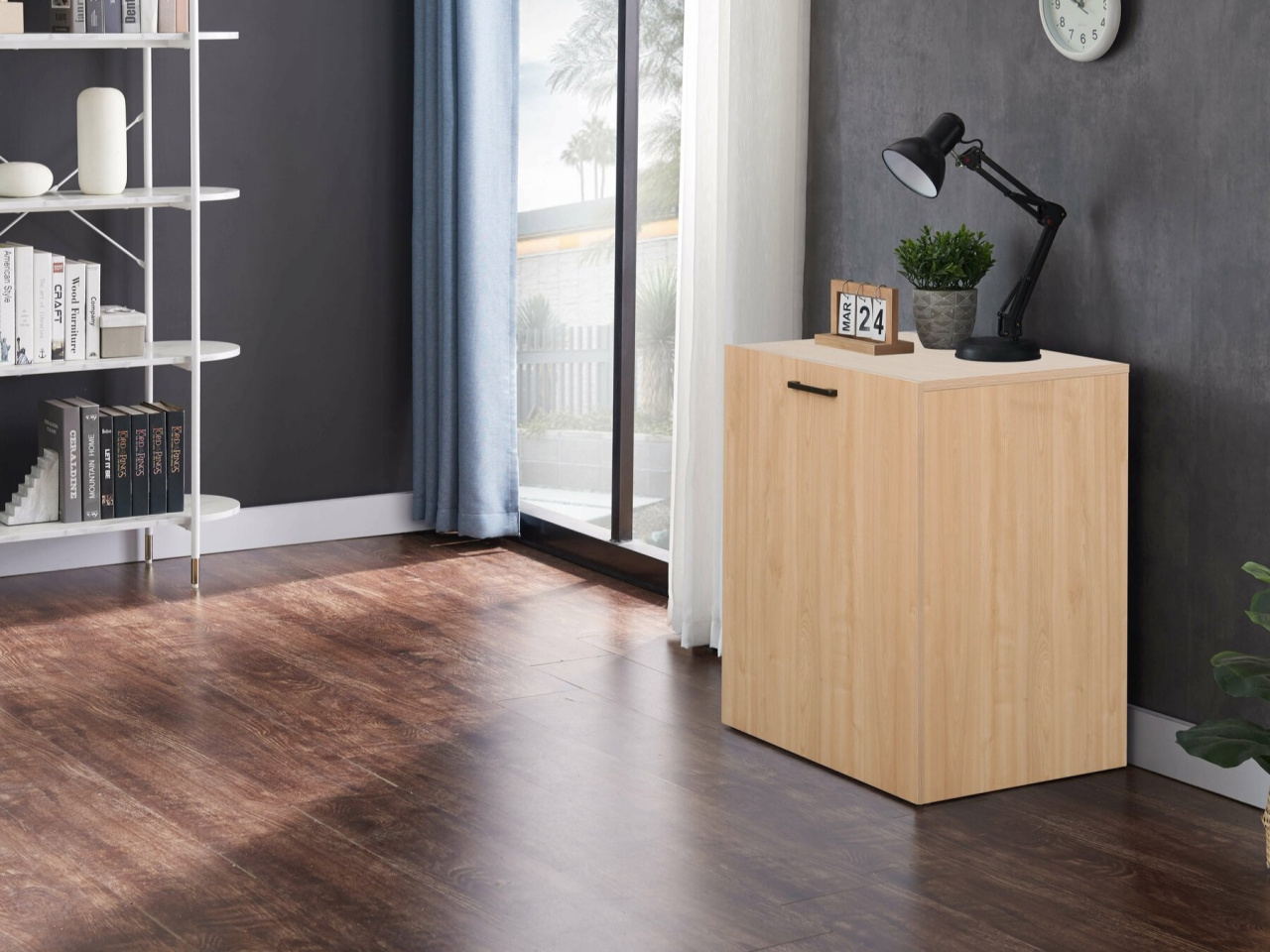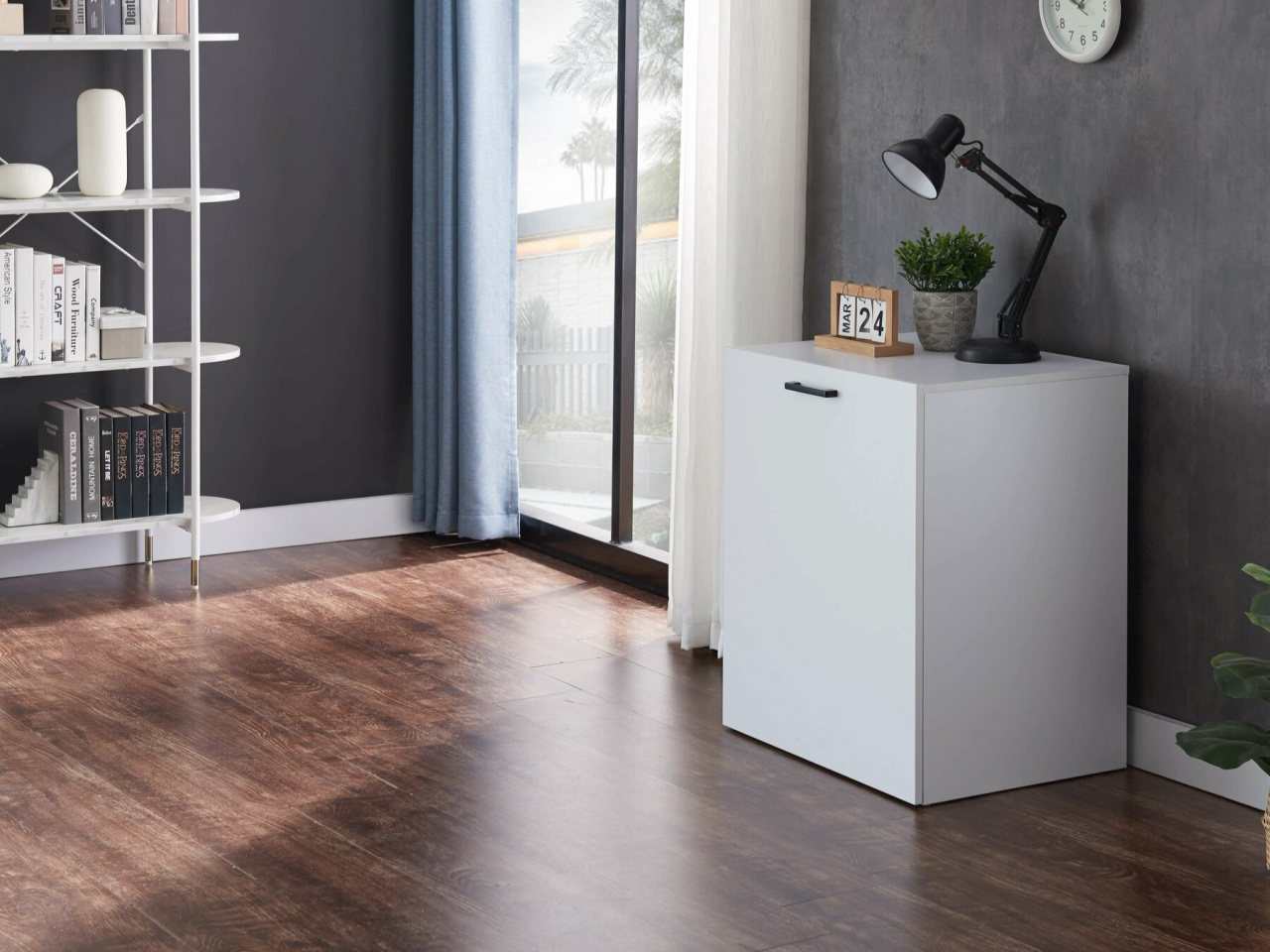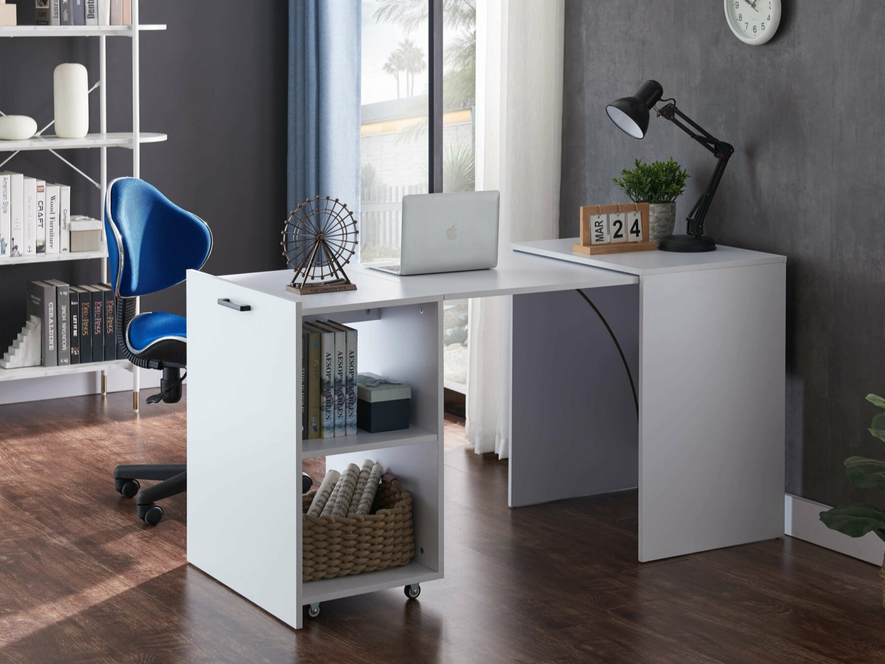 Összecsukható íróasztal praktikus kialakításával könnyedén alkalmazkodik a modern otthonok változó igényeihez. Letisztult formája harmonikusan illeszkedik kisebb helyiségekbe, így ideális választás gyerekszobába, diákszobába vagy kompakt munkasarok kialakításához. Összecsukható szerkezete lehetővé teszi, hogy használaton kívül minimális helyet foglaljon, ami különösen előnyös kis alapterületű lakásokban. A beépített polc átgondolt tárolóteret kínálnak a mindennapi eszközöknek, segítve a rendezett és hatékony munkavégzést. Felülete biztos alapot nyújt tanuláshoz, számítógépes munkához vagy kreatív projektekhez. Egyszerű megjelenése időtálló, így könnyedén illeszkedik különböző berendezési stílusokba. A multifunkcionális kialakítás kényelmet és rugalmasságot ad minden olyan térben, ahol fontos a hatékony helykihasználás.