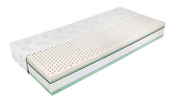 Szendvicsszerkezetű hideghab komfortmatrac oldalanként eltérő keménységgel, zónásított gumilatex izületvédő kényelmi réteggel, vákuumcsomagolásban.